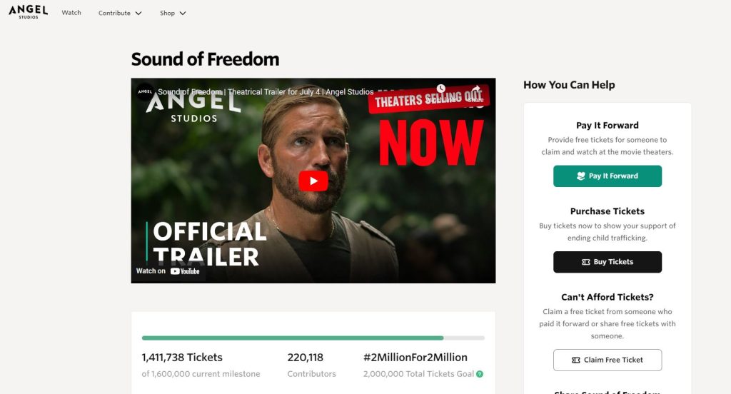 Angel Studios’ PAY IT FORWARD Technology Propels SOUND OF FREEDOM to #1 Movie in America July 4th