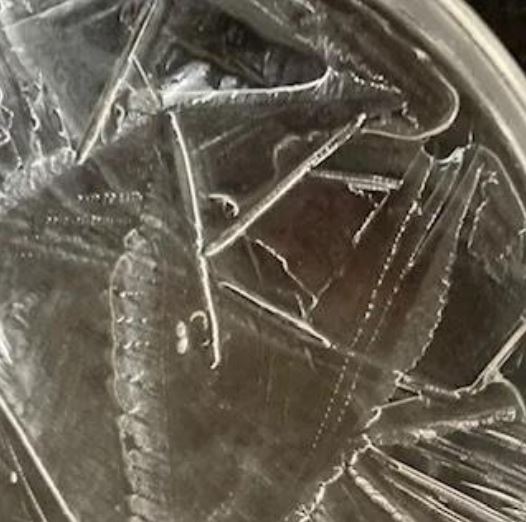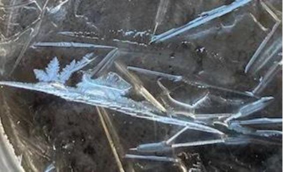 Veda Austin, a New Zealander and lay scientist, has developed a method of communicating with water. She places a petri dish of water on top of a written word or image then freezes it to find related images in the iced crystals. Using her methodology, I’ve tried these experiments myself. You can see a couple of the results below. For the first image, I put a picture of Kate Bush under a petri dish of water for around 10 seconds before freezing. In the first image below you can see a K and T which is similar to Kate’s logo. Next, I wrote ‘love’ on a piece of paper and again put it under a petri dish of water for about 10 seconds before freezing; a feather, a leaf, a heart and a triangle can be seen in the second image below.Â
