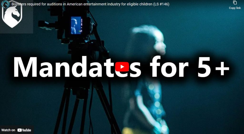 In this video, Bret Weinstein and Heather Heying (both PhDs in Biology), discuss the tyrannical requirements for children auditioning in the entertainment industry to be vaccinated and (if eligible) boosted. If a child is offered a role, they would need to provide documentation proving their vaccination and booster status.