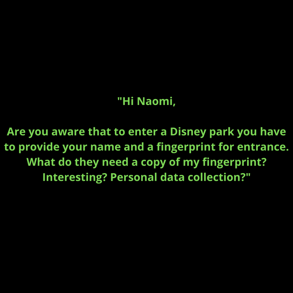 CITIZENS’ CORNER: Concerned Email Regarding Disney’s New Fingerprint Entry