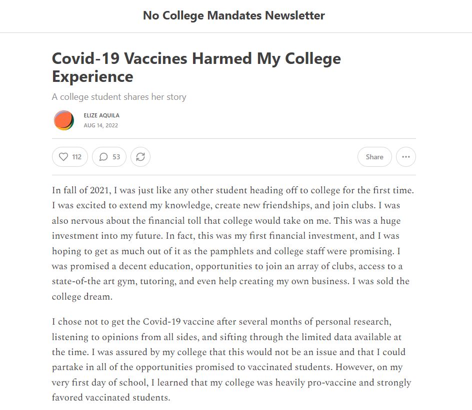 “Covid-19 Vaccines Harmed My College Experience” A College Student Shares Her Story