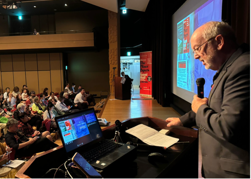 Dr. Chris Flowers representing the WarRoom/DailyClout Pfizer and Moderna Documents Analysis Project at the International COVID (Crisis) Summit 6 in Tokyo, Japan.