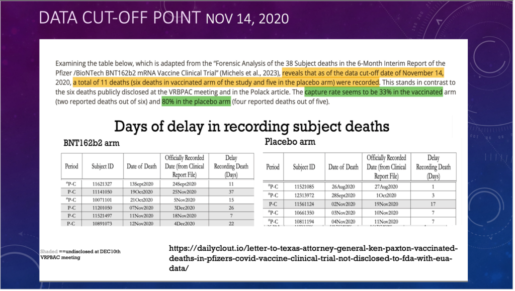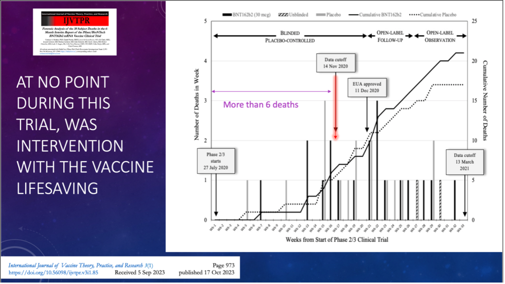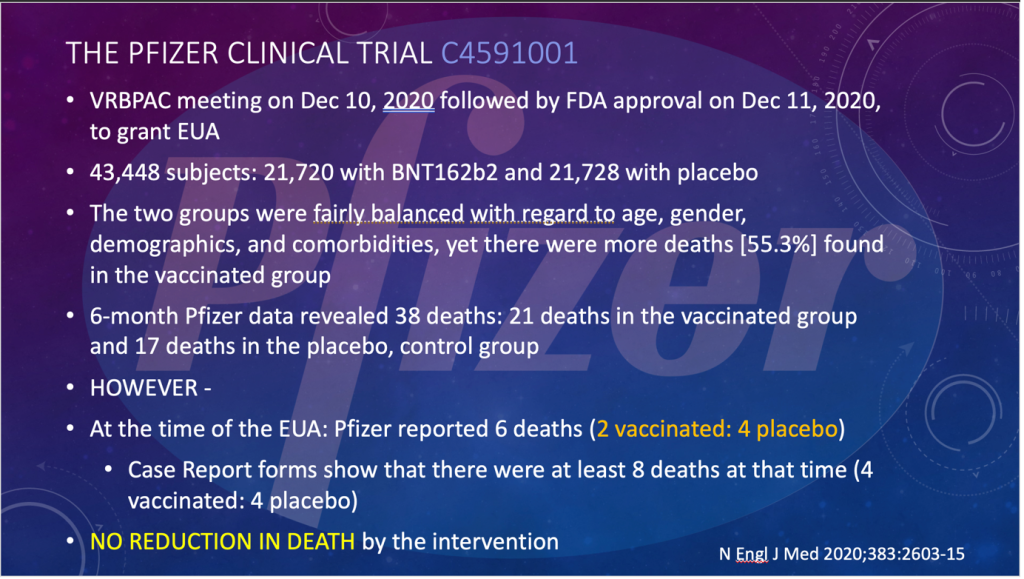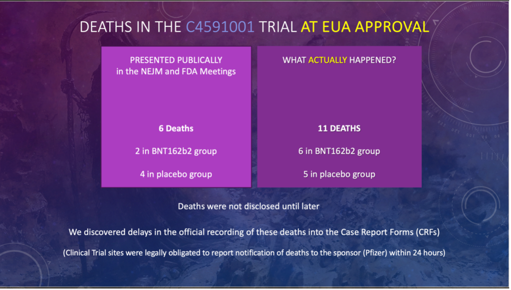 - After EUA approval, almost all the placebo recipients from the trial received the vaccine, and the deaths among those receiving the vaccine continued to climb.