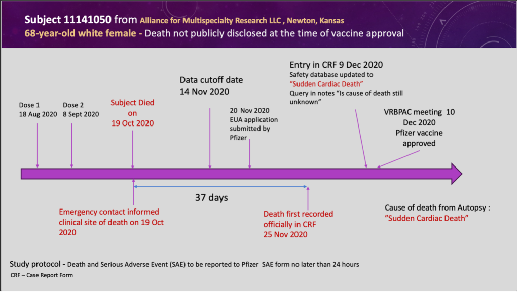 - We found these delays in reporting by reviewing the CRFs and were able to show evidence of two deaths that Pfizer knew about but did not disclose at the time of the data submission for the EUA.