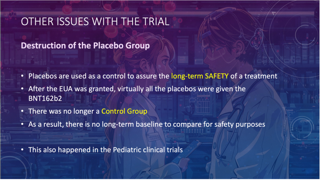 - Similarly, in the Pfizer pediatric COVID vaccine trials, the subjects were unblinded and received a third dose, which destroyed the ability to track long-term safety in the children’s trial.