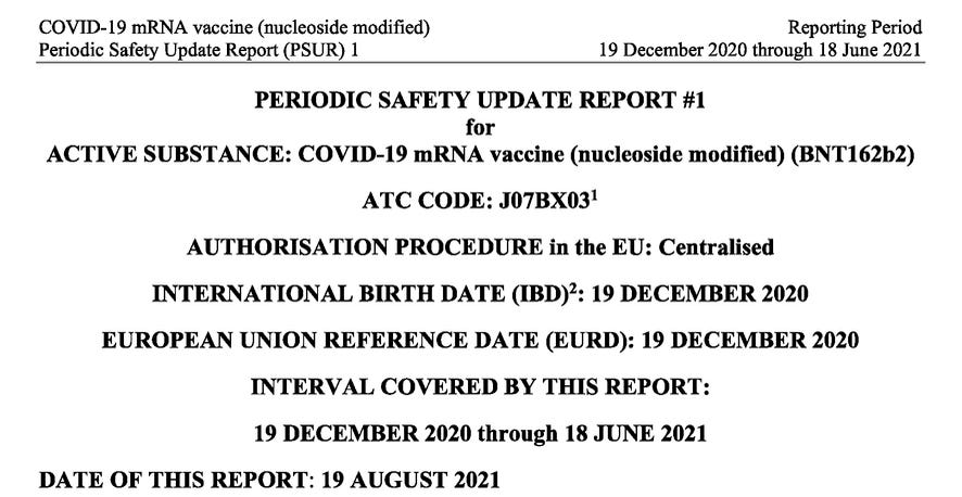 Reported initially by investigative journalist Sonia Elijah on her substack after a FOIA enabled the first-ever safety report from the European Union (PSUR#1) to be released.
