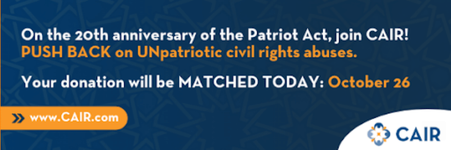 You can push back today against UNpatriotic civil rights abuses like watchlist profiling, predatory surveillance, other unconstitutional Patriot Act provisions, and National Security policies that violate our rights. Help us continue to defend people like Anas and hold government agencies accountable for their systemic profiling of Muslims as terrorists.