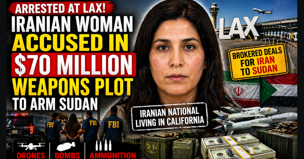 Federal authorities have arrested an Iranian national living in California, accusing her of orchestrating a large-scale international weapons trafficking operation involving Iranian-made drones, explosives, and ammunition destined for Sudan.