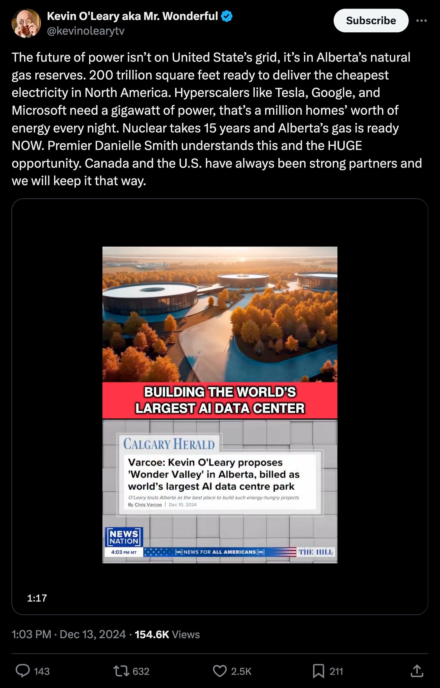 According to my national security sources, America’s oligarchs need more power to fuel the AI-powered big data centers of our dystopian future — and that cheap electricity is sitting in Canada right now as natural gas.