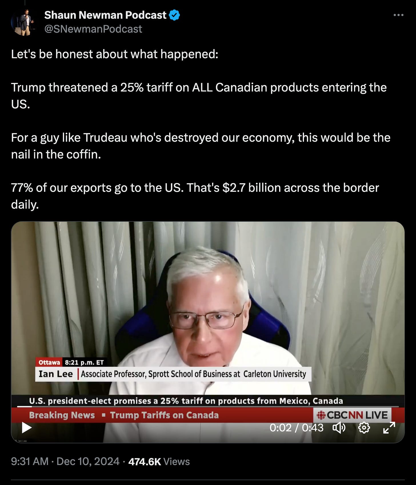 You must remember that Trudeau visited Trump at Mar-a-Lago just last month, where President Trump supposedly called him “Governor” and told him that 25% tariffs would be imposed on Canada if the border wasn’t closed immediately.