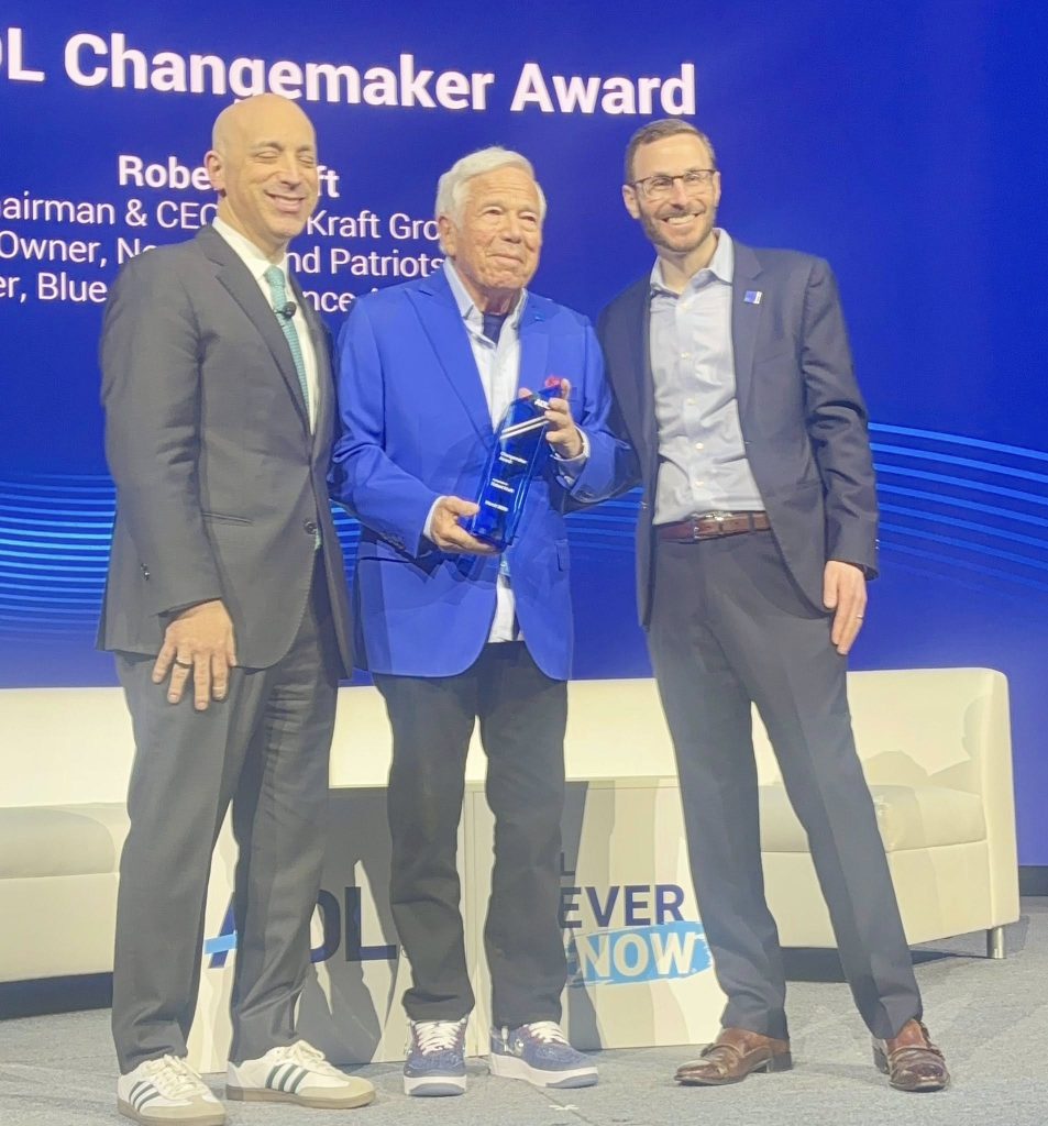 That theme of responsibility extended into the business and philanthropic world, uniting leaders from every sector in society, where Robert Kraft was honored with the Changemaker Award. Kraft, CEO of the Kraft Group, most notably owner of the New England Patriots and founder of the Blue Square Alliance Against Hate, spoke about the power of unity and the symbolism of the blue square as a visible stand against antisemitism and all forms of hate.