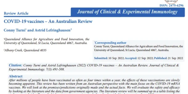 In case you missed it. Every health authority in the world should be warning the public about this. The paper was published Sept 21, 2022. Figure 1. “Not safe or effective” Executive summary COVID-19 vaccines – An Australian Review was published in the peer-reviewed scientific literature on Sept 21, 2022. Here’s … Continue reading Now published in the peer-reviewed scientific literature: “The mRNA vaccines are neither safe nor effective, but outright dangerous”