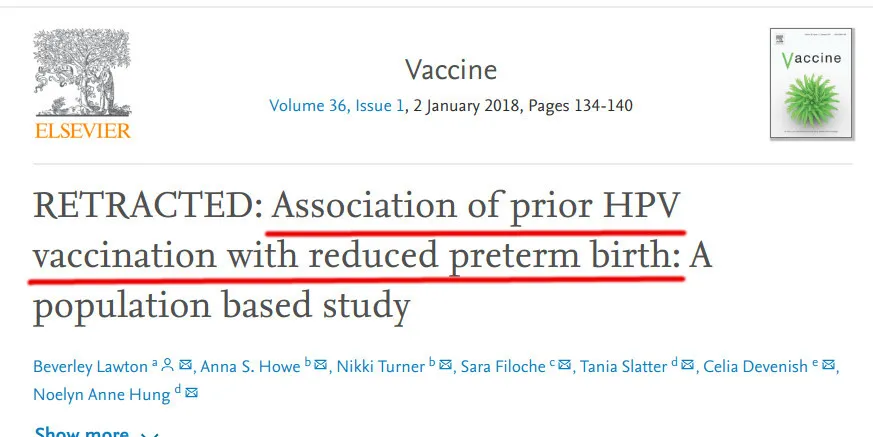 A study by New Zealand’s Beverley Lawton et al. “proved” that receipt of the HPV vaccine reduced preterm births.