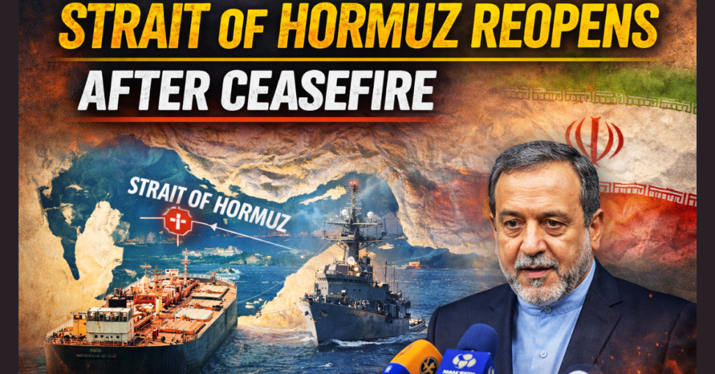 The Strait of Hormuz—one of the most critical chokepoints in the global energy system—has been declared “completely open” by Abbas Araghchi following a U.S.-mediated ceasefire that temporarily halted Israeli military operations in Lebanon.