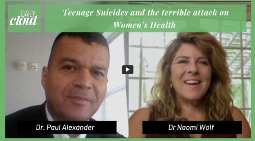 In this video, Dr. Naomi Wolf speaks with Dr. Paul Alexander about teenage suicides, miscarriage rates and reproductive disorders, and the CDC. Don’t miss this moving discussion!