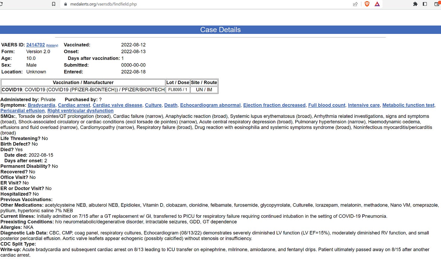 Update: I know the 2 death reports for children maybe a duplicated report. However, they have different VAERS IDs, and it is not my job to clean up VAERS. It is CDC’s job for which they get our money, and then proceed to deny the deaths and injuries documented in the database.