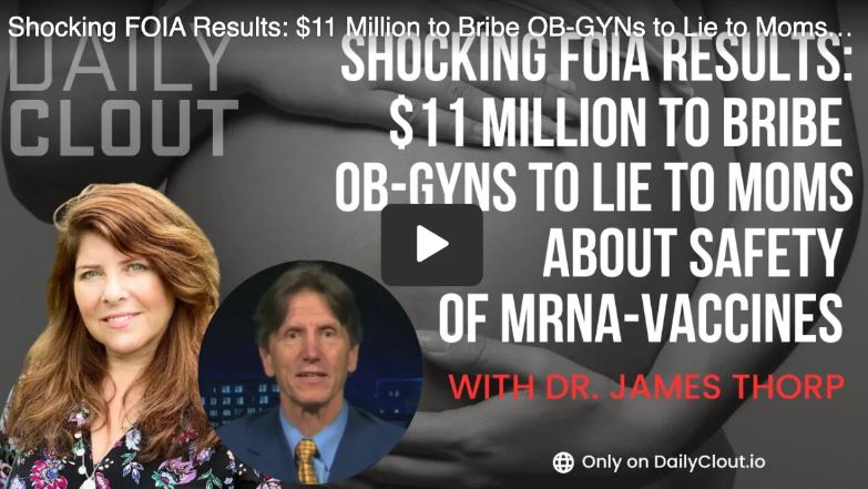 In this interview, Dr Thorp describes how he was unceremoniously if not injuriously fired by his health system employer – though he was among the most published of his colleagues. He described the results of a FOIA launched by his wife, attorney Maggie Thorp, and himself, that revealed $13 billion in funding to “influencers” to promote the mRNA injections, including surfacing a contract with a for-profit OB/GYN NGO that oversees tens of thousands of obstetricians and gynecologists on two continents. The contract that the Thorps’ FOIA disclosed, provides for the return of the money if medical organizations do not adhere to the “safe and effective” for pregnant women and new moms script presented to them by HHS. Dr Thorp independently confirms the WarRoom/DailyClout’s findings now from three other independent sources: that placentas, fetuses and newborns are being damaged by the mRNA injection. All four sources confirm the same kinds of damage: fibrins, blood clots, “small for dates” restricted growth and weight of the placentas, and calcifications. Meaning that babies of vaccinated moms in utero may not be getting enough food, and they may lack the room to grow normally.