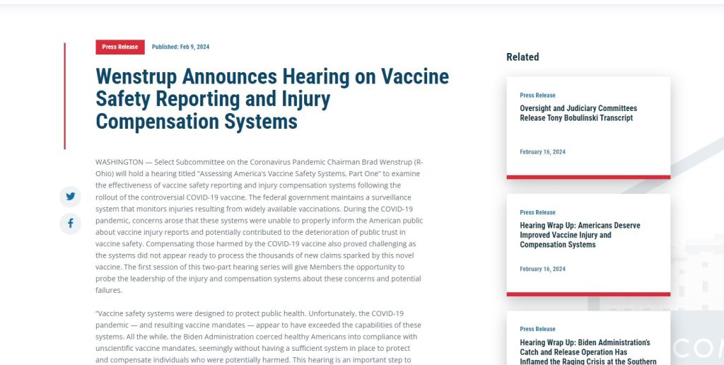 “Vaccine safety systems were designed to protect public health. Unfortunately, the COVID-19 pandemic — and resulting vaccine mandates — appear to have exceeded the capabilities of these systems. All the while, the Biden Administration coerced healthy Americans into compliance with unscientific vaccine mandates, seemingly without having a sufficient system in place to protect and compensate individuals who were potentially harmed. This hearing is an important step to increase vaccine transparency and to ensure that victims of future vaccine injuries are properly compensated,” said Chairman Wenstrup.