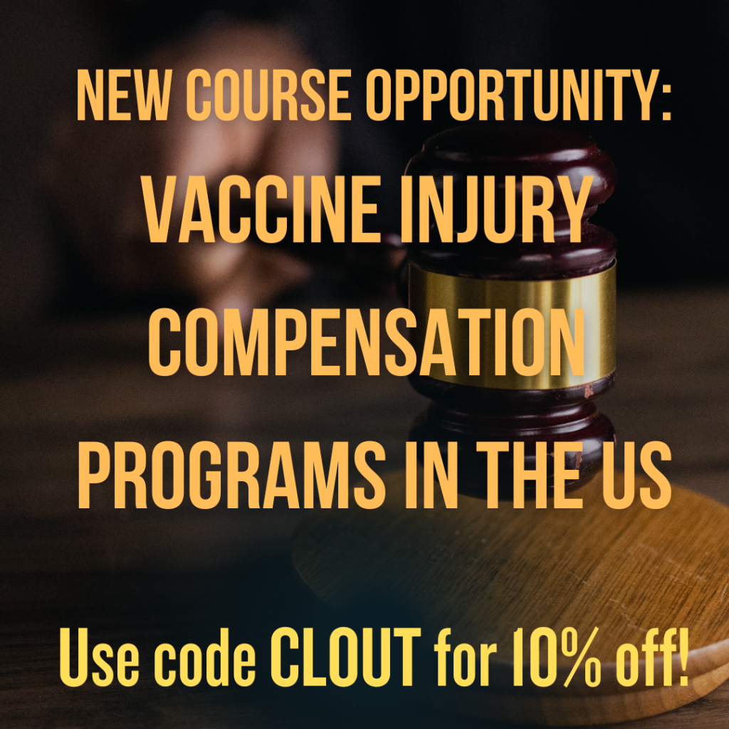 In this course, students will learn the structure, function, and defects of the programs in the US created by Congress to award compensation to adults and children potentially and actually harmed or killed by vaccines. We will review a variety of important topics, review case histories. This course is for parents and lawyers new to US vaccine injury compensation programs.